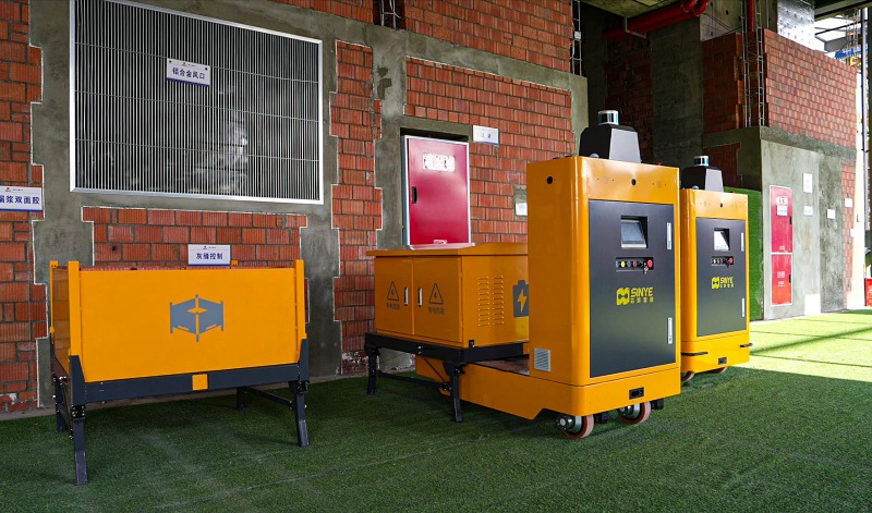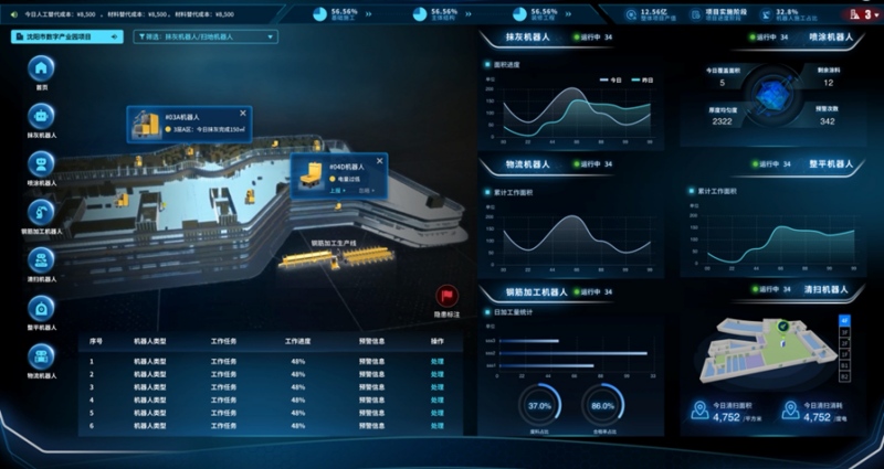 運輸機器人搭載著各類建材和小型設備來回穿越,擁有行業首創的BIM+多源融合導航技術,机能指標業界領先,轉運物資﹔焊接機器人正在高空舞動“手臂”,該產品採用國際標准接口,分別是高空焊接機器人、多用处智能配送機器人、鋼筋智能加工機器人和智能噴涂機器人,自動進行焊接做業﹔噴涂機器人正在室內“揮毫潑墨”,相當於一座“可移動的小型鋼筋加工廠”,”